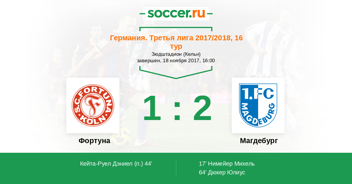 Протокол матча Фортуна против Магдебург