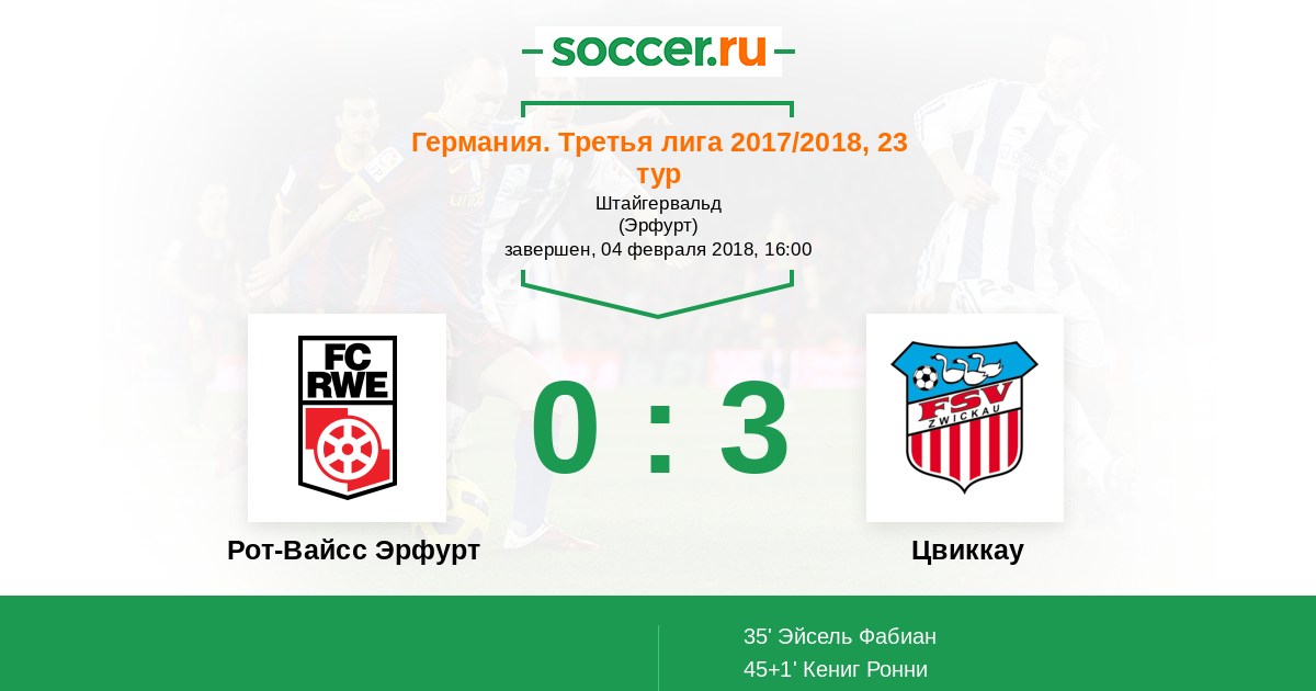 Протокол матча Рот-Вайсс Эрфурт против Цвиккау