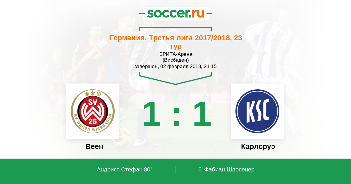 Протокол матча Веен против Карлсруэ