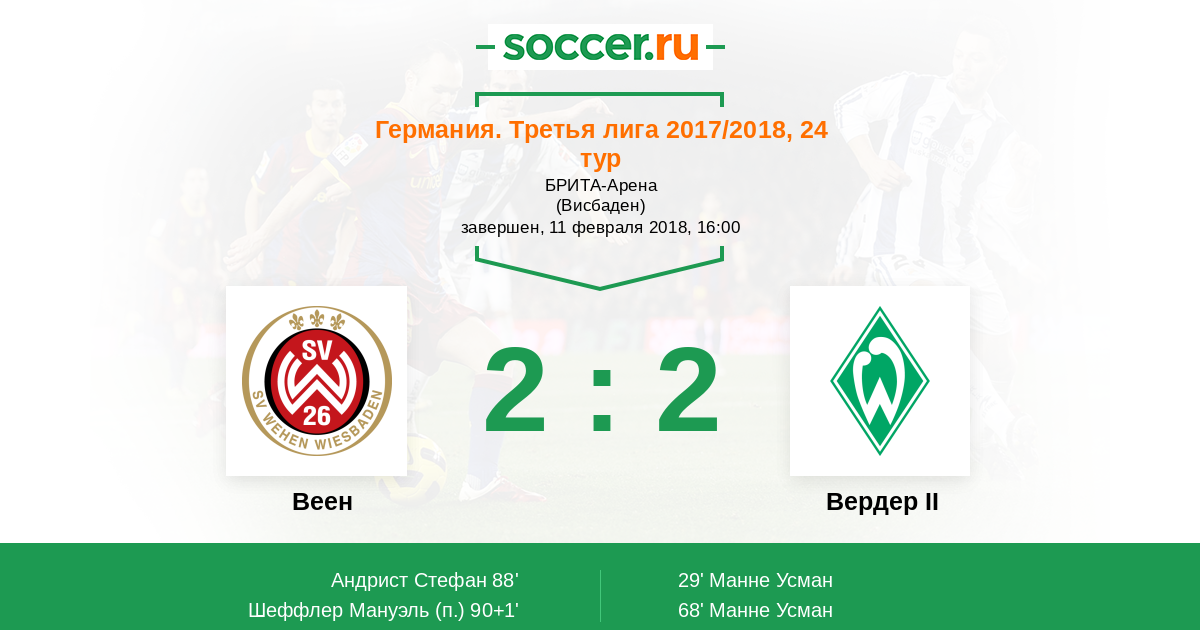 Протокол матча Веен против Вердер II