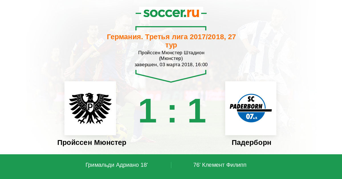 Протокол матча Пройcсен Мюнстер против Падерборн