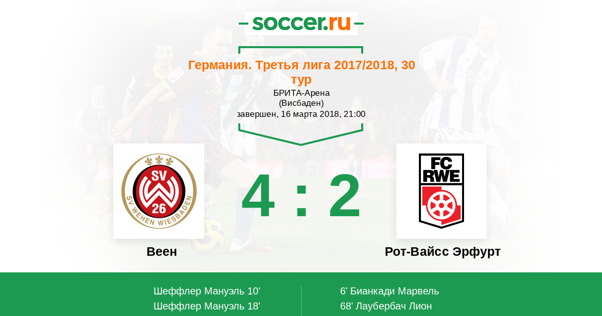 Протокол матча Веен против Рот-Вайсс Эрфурт