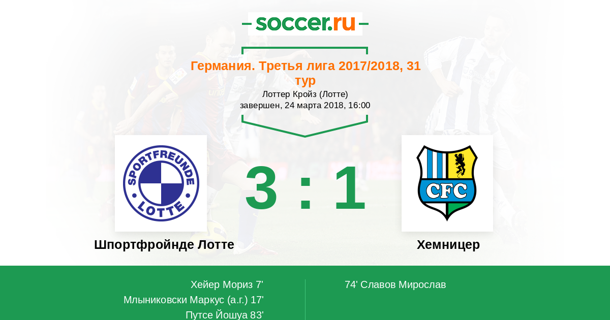 Протокол матча Шпортфройнде Лотте против Хемницер
