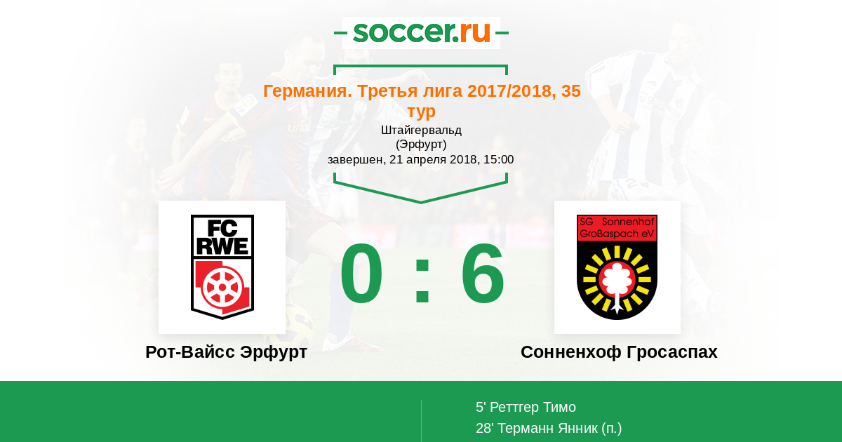 Протокол матча Рот-Вайсс Эрфурт против Сонненхоф Гросаспах
