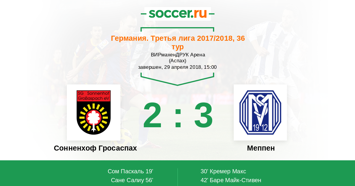 Протокол матча Сонненхоф Гросаспах против Меппен