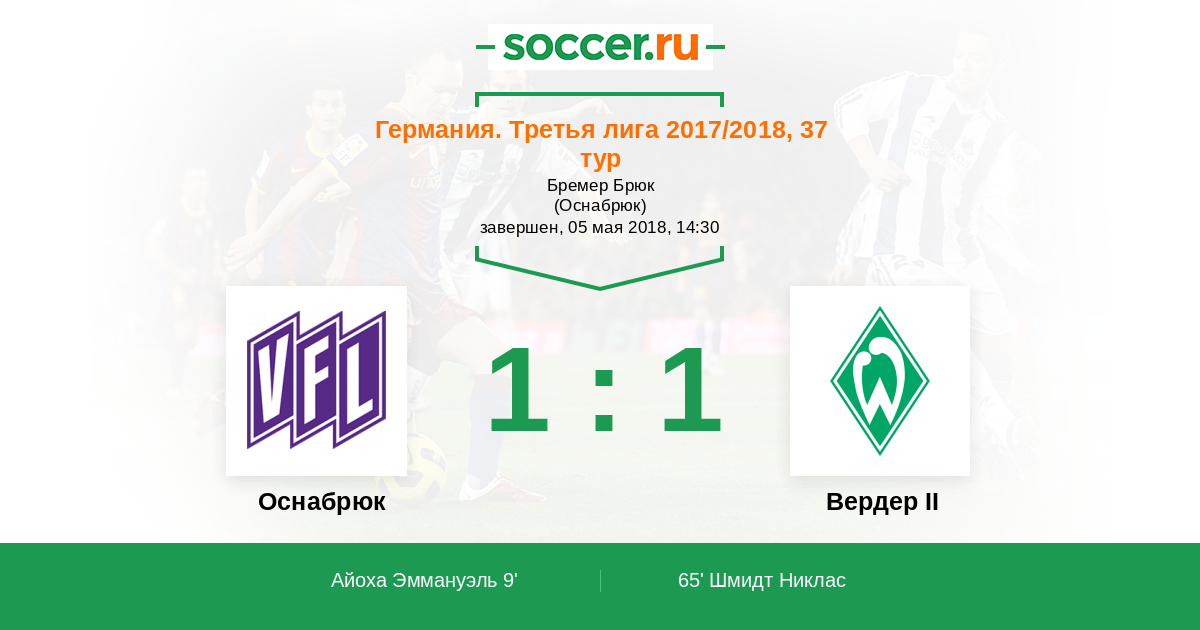Протокол матча Оснабрюк против Вердер II