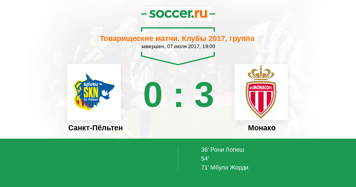 Протокол матча Санкт-Пёльтен против Монако