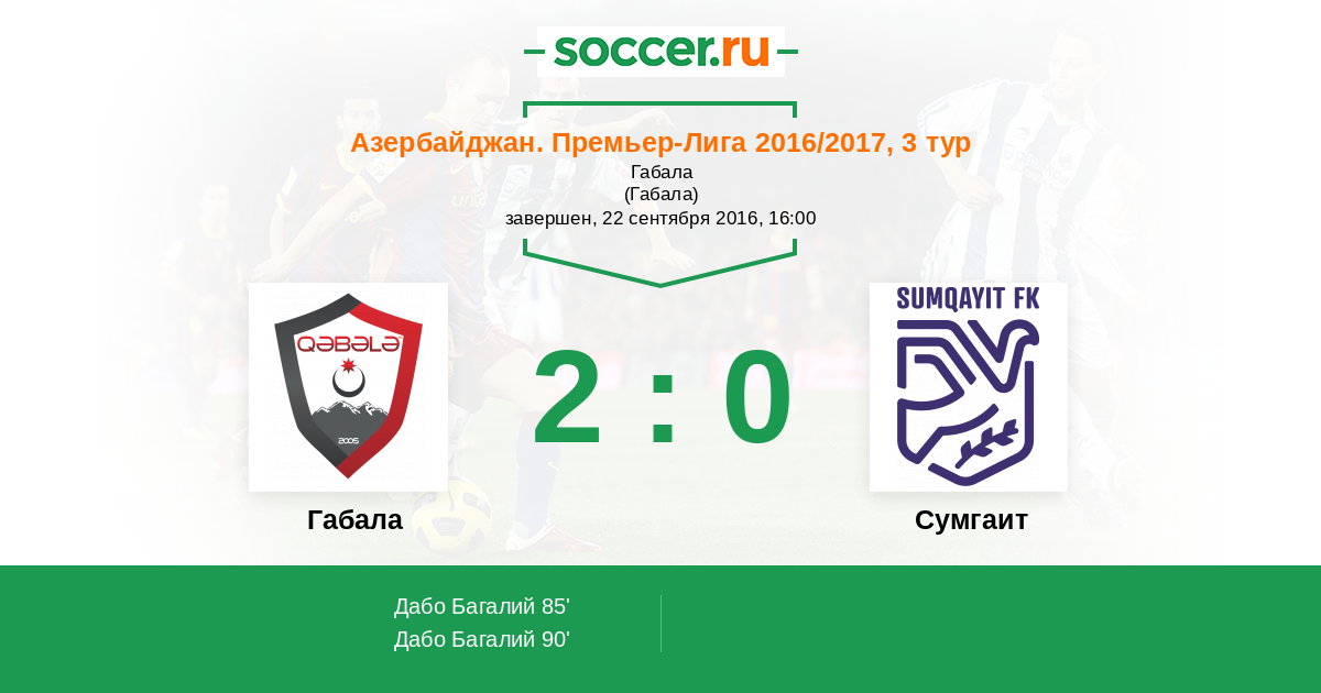 Протокол матча Габала против Сумгаит