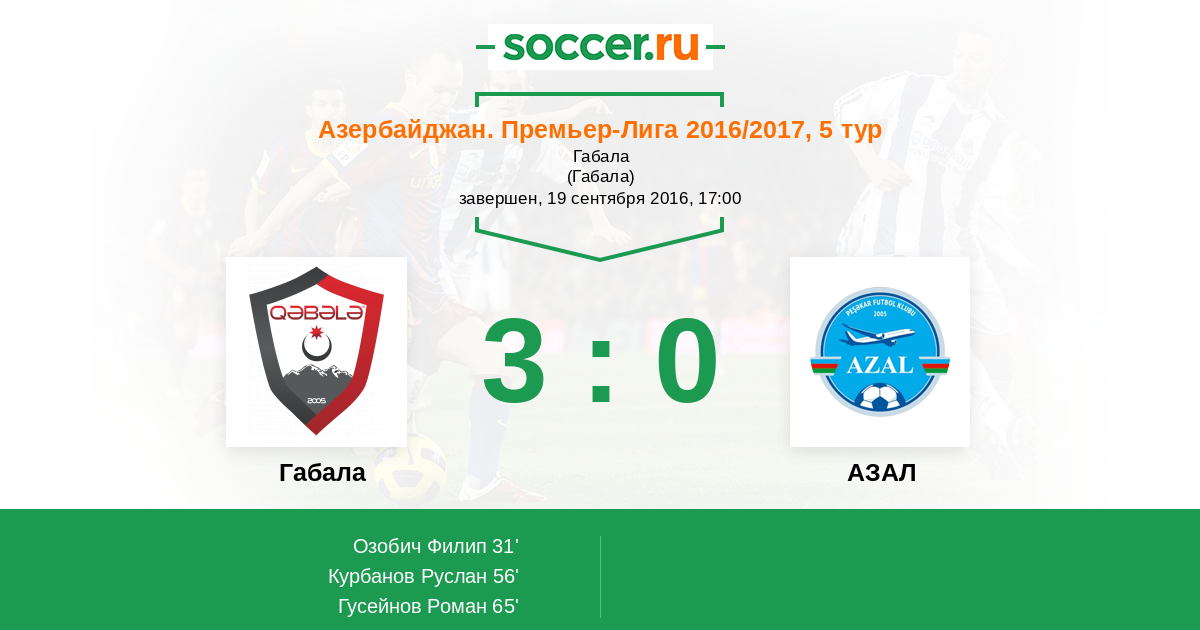 Протокол матча Габала против АЗАЛ