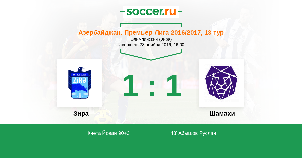 Протокол матча Зира против Интер