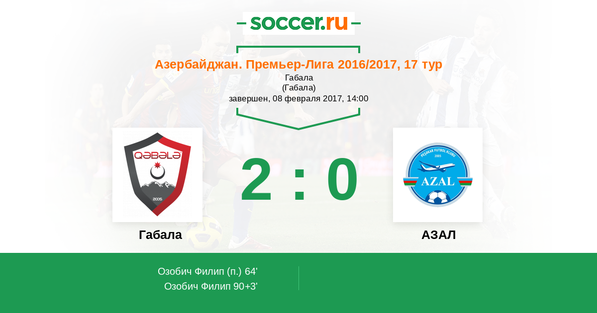 Протокол матча Габала против АЗАЛ