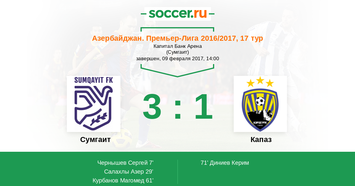 Протокол матча Сумгаит против Кяпаз