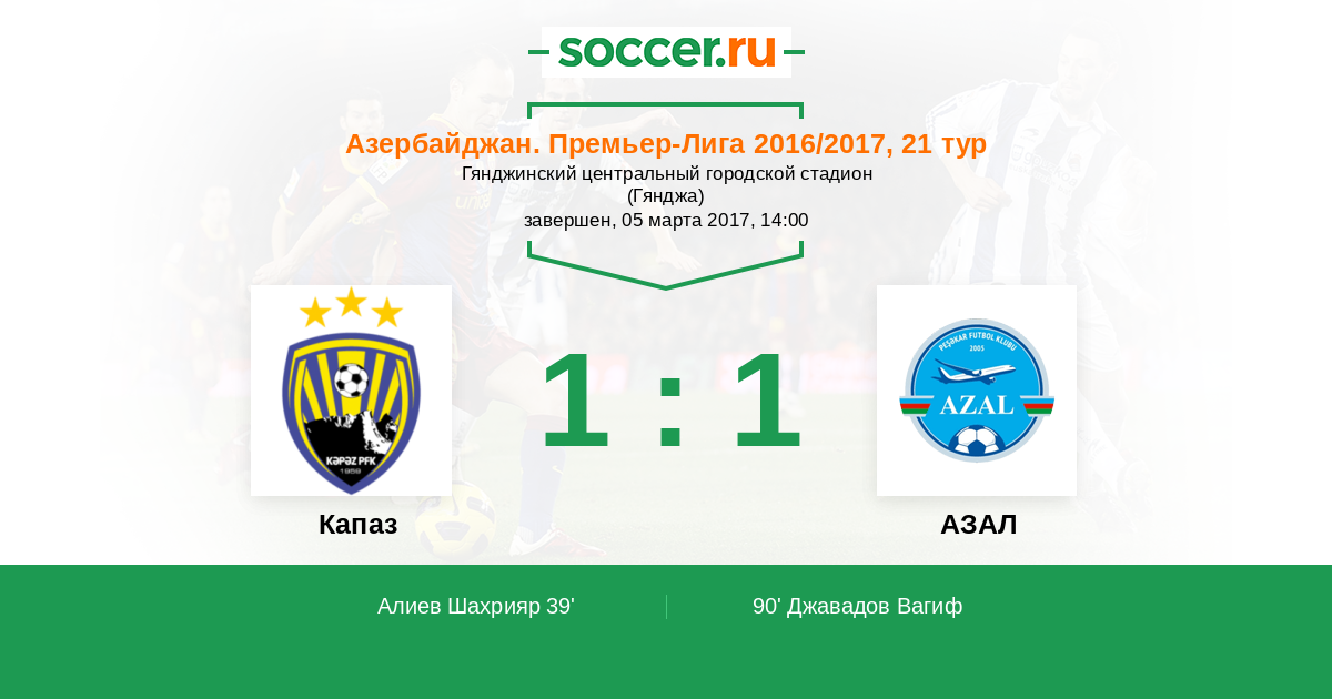 90' (1:1) Джавадов Вагиф (70)