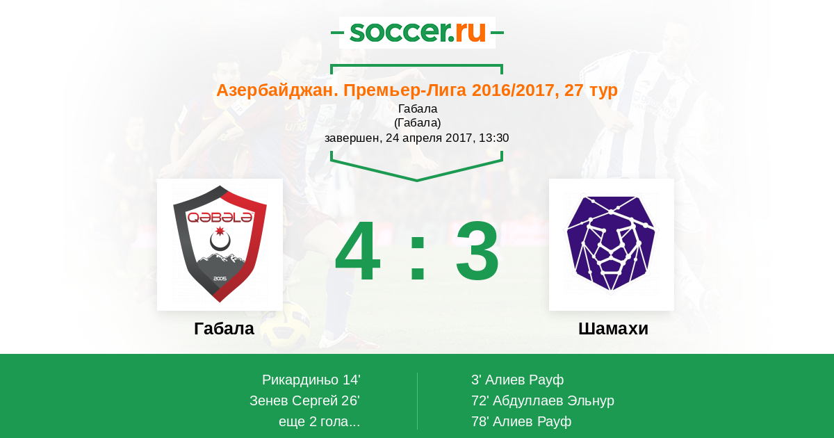 Протокол матча Габала против Интер