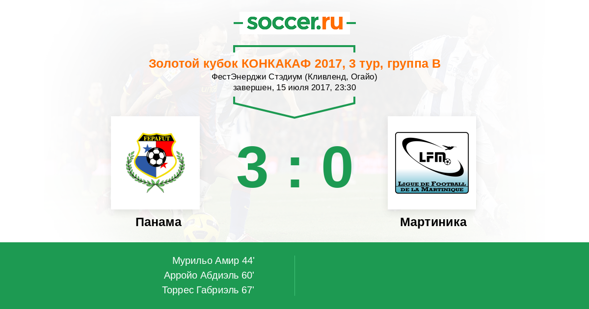 Протокол матча Панама против Мартиника