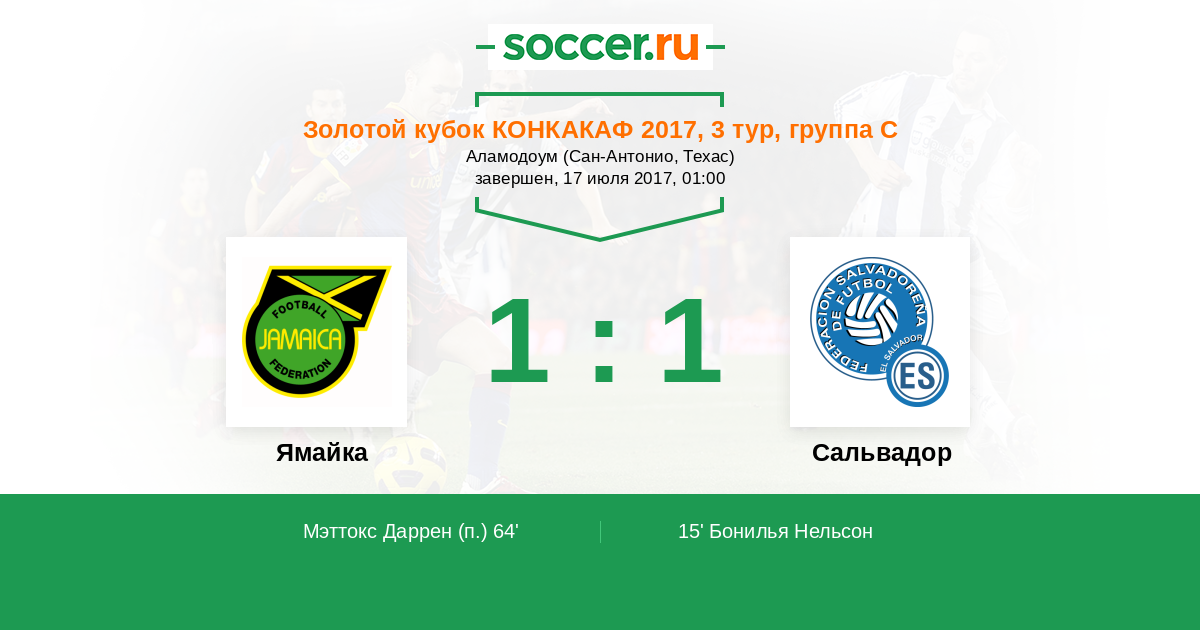 Протокол матча Ямайка против Сальвадор