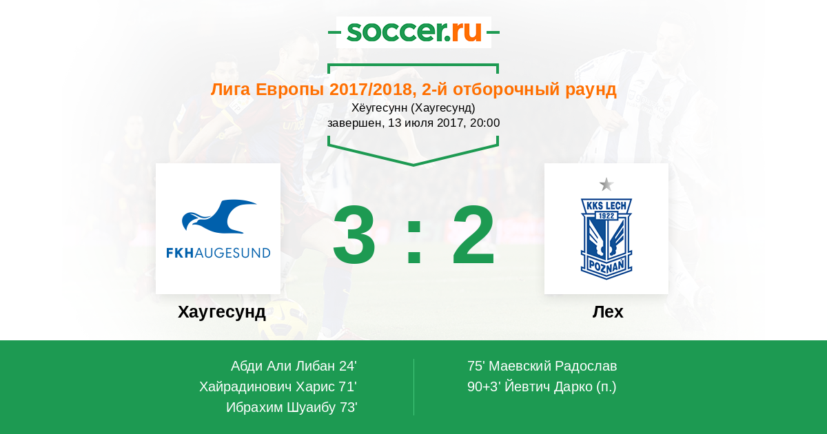 Протокол матча Хаугесунд против Лех