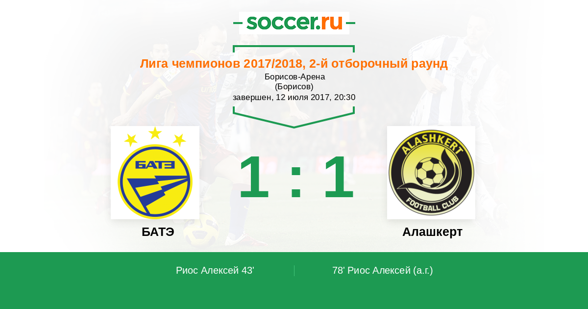 78' (1:1) Автогол Риос Алексей (17)