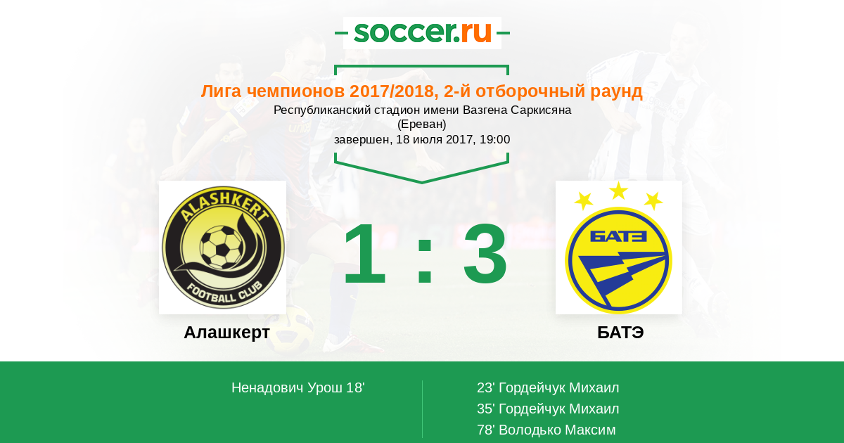 Протокол матча Алашкерт против БАТЭ