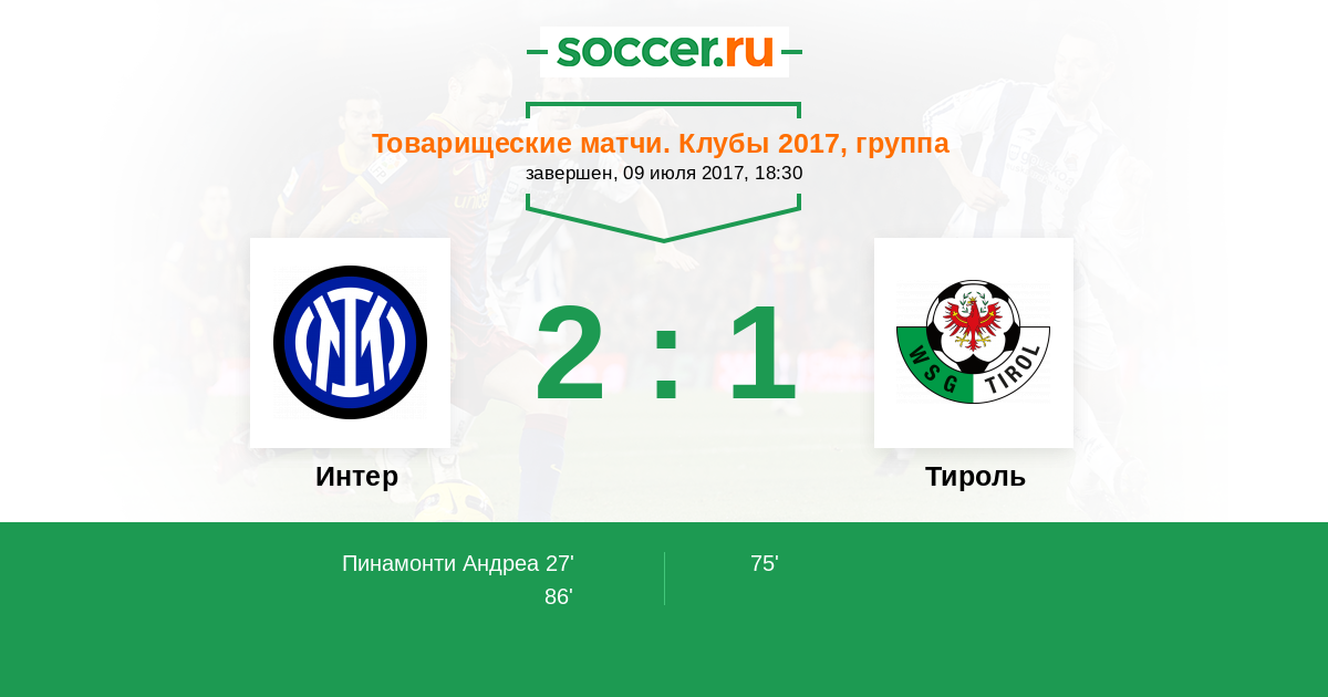Протокол матча Интер против Тироль