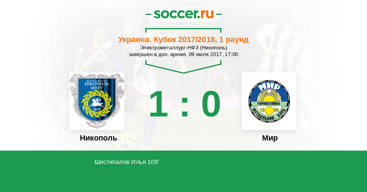 Протокол матча Никополь против Мир
