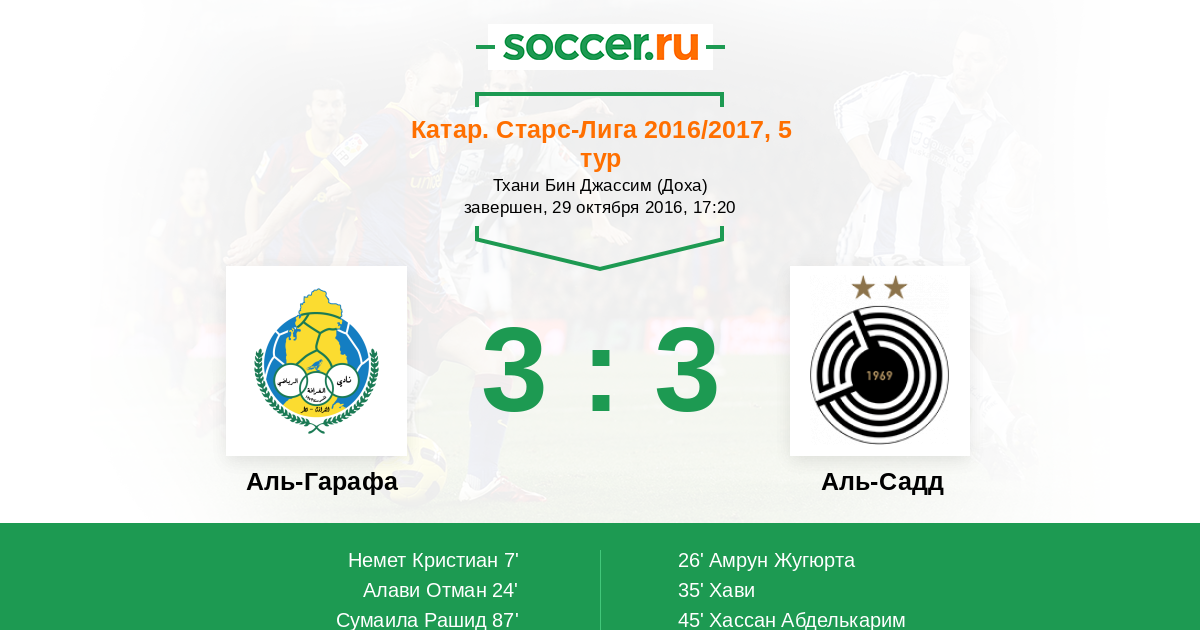 Протокол матча Аль-Гарафа против Аль-Садд