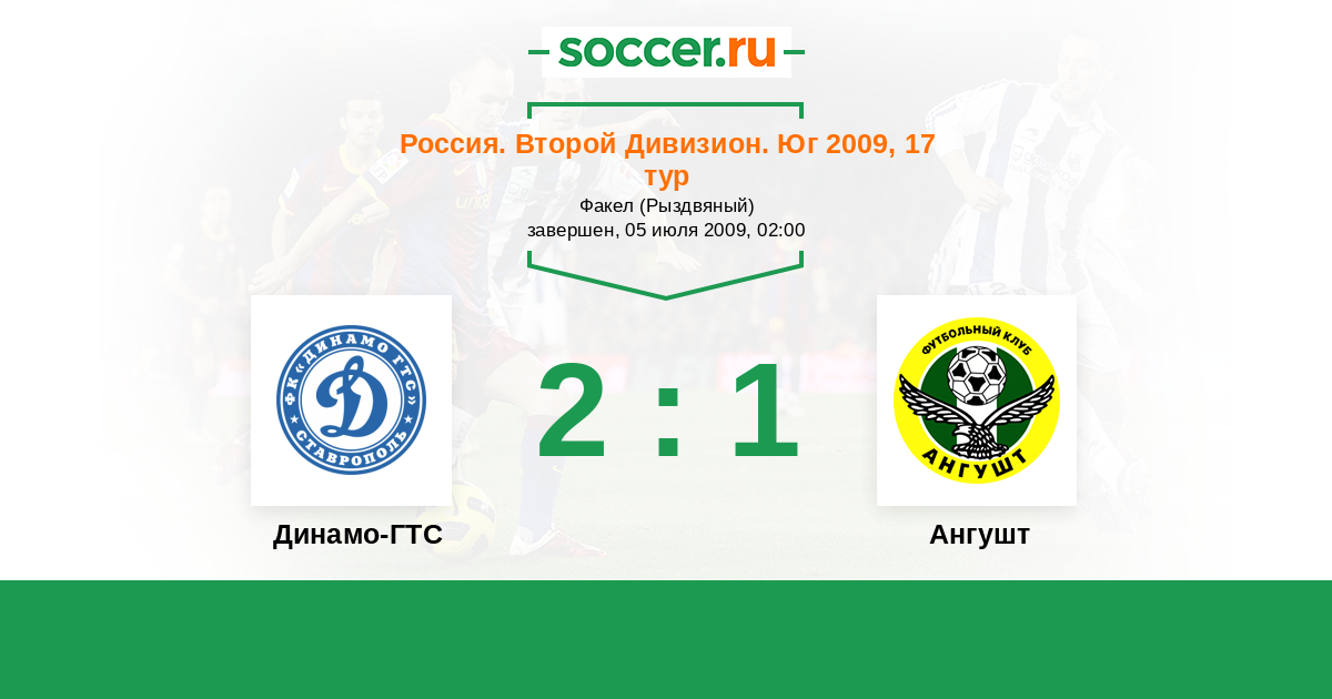 Россия. Вторая лига. Группа 1 21.10.2009 Ангушт Логотип футбольный клуб Ангушт (Назрань) 1:2 Логотип футбольный клуб Кавказтрансгаз-2005 (Ставрополь) Кавказтрансгаз-2005