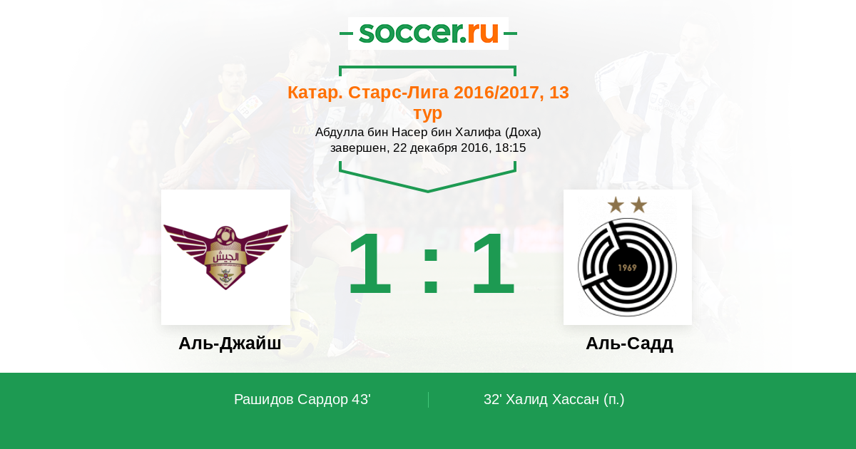 Протокол матча Аль-Джайш против Аль-Садд