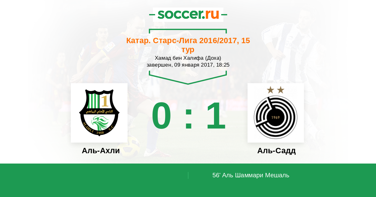 Протокол матча Аль-Ахли против Аль-Садд