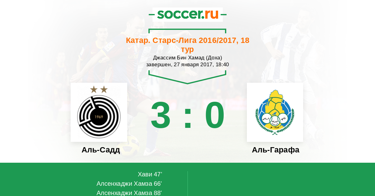 Протокол матча Аль-Садд против Аль-Гарафа