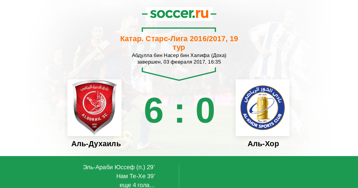 Протокол матча Лекхвия против Аль-Хор