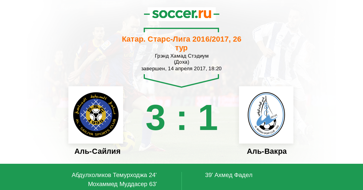 Протокол матча Аль-Сайлия против Аль-Вакра