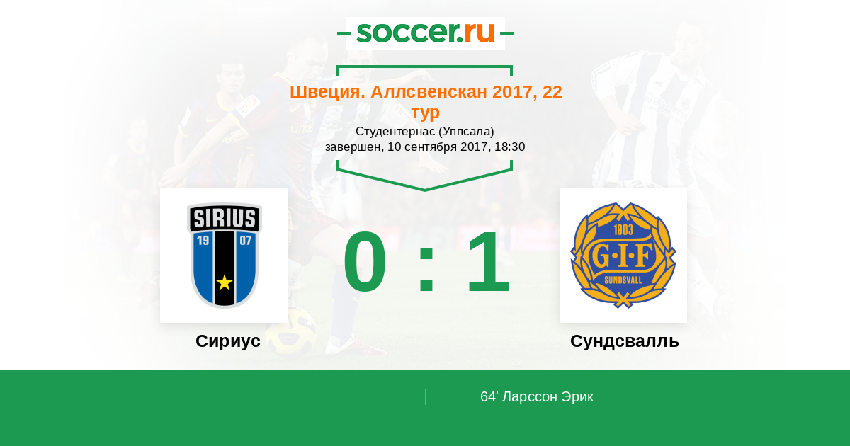 Протокол матча Сириус против Сундсвалль