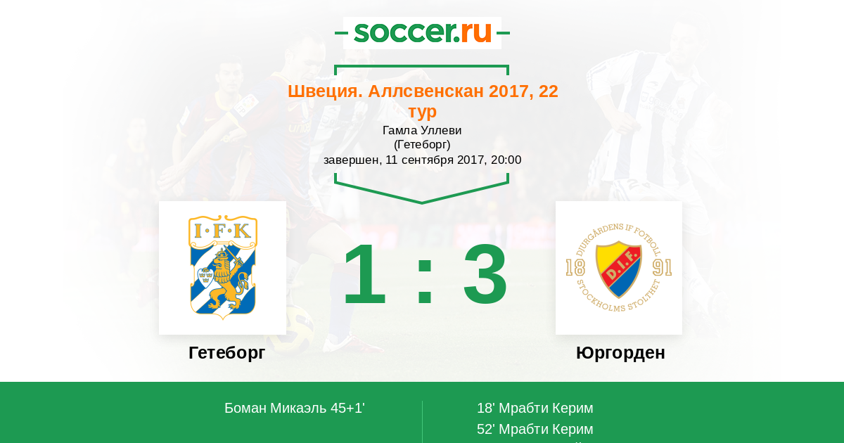 Djurgardens в первом тайме 0 мячей, во втором 1 мяч.