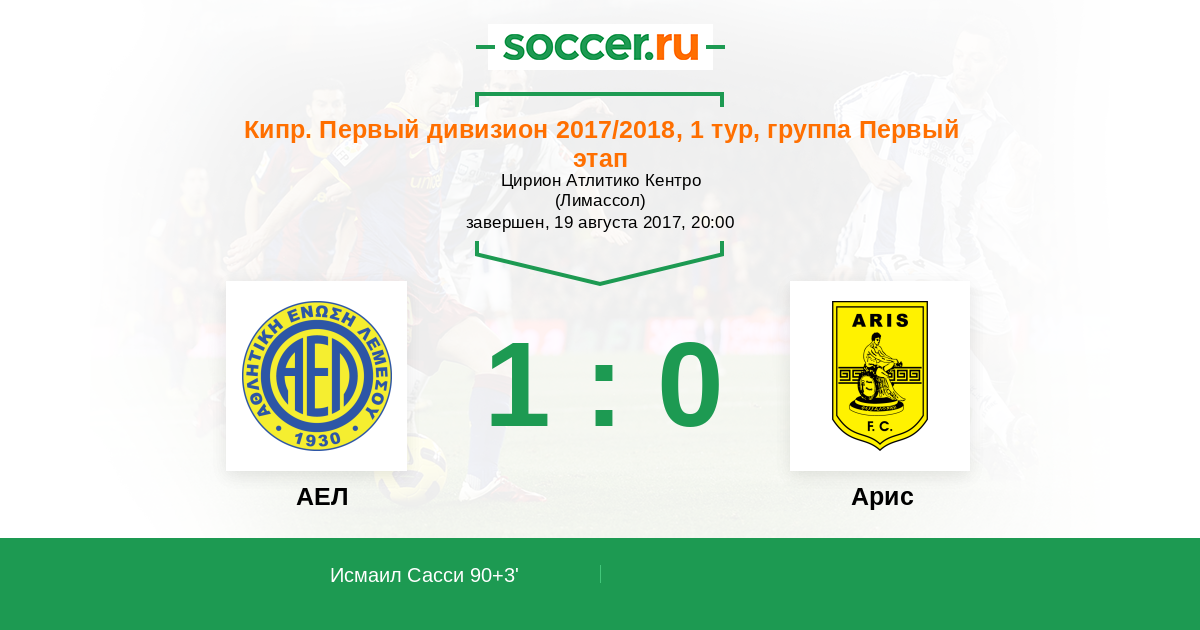 Протокол матча АЕЛ против Арис