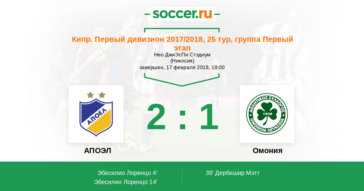 Протокол матча АПОЭЛ против Омония