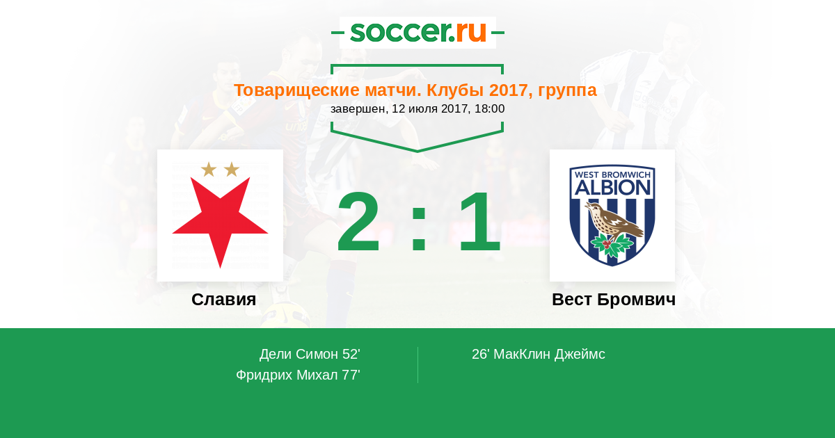 Протокол матча Славия против Вест Бромвич