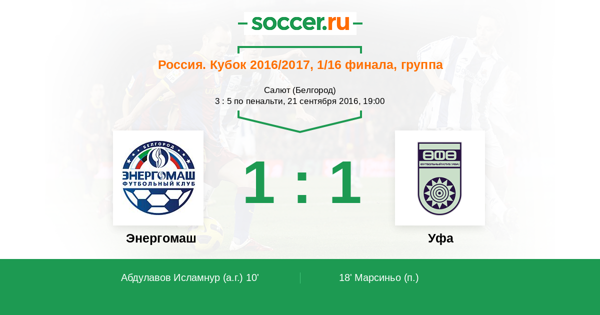 Протокол матча Энергомаш против Уфа