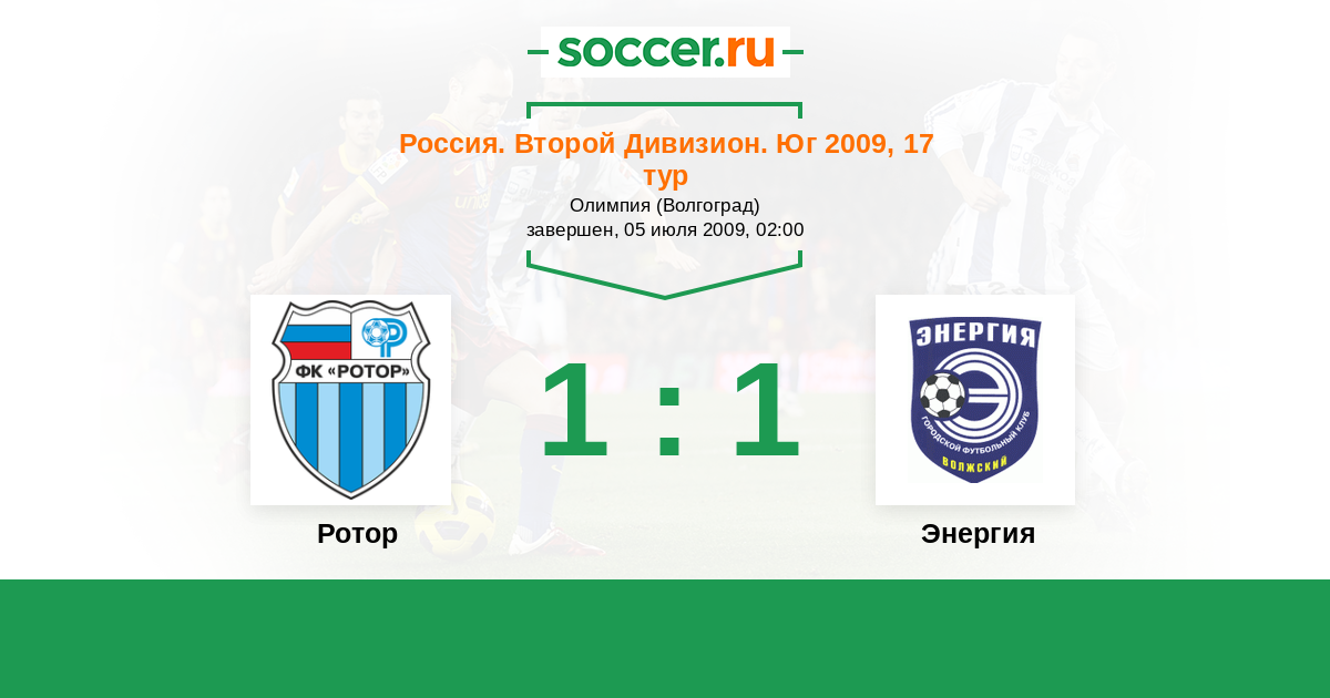 Россия. Вторая лига. Группа 1 21.10.2009 Энергия Логотип футбольный клуб Энергия (Волжский) 3:0 Логотип футбольный клуб Ротор (Волгоград) Ротор