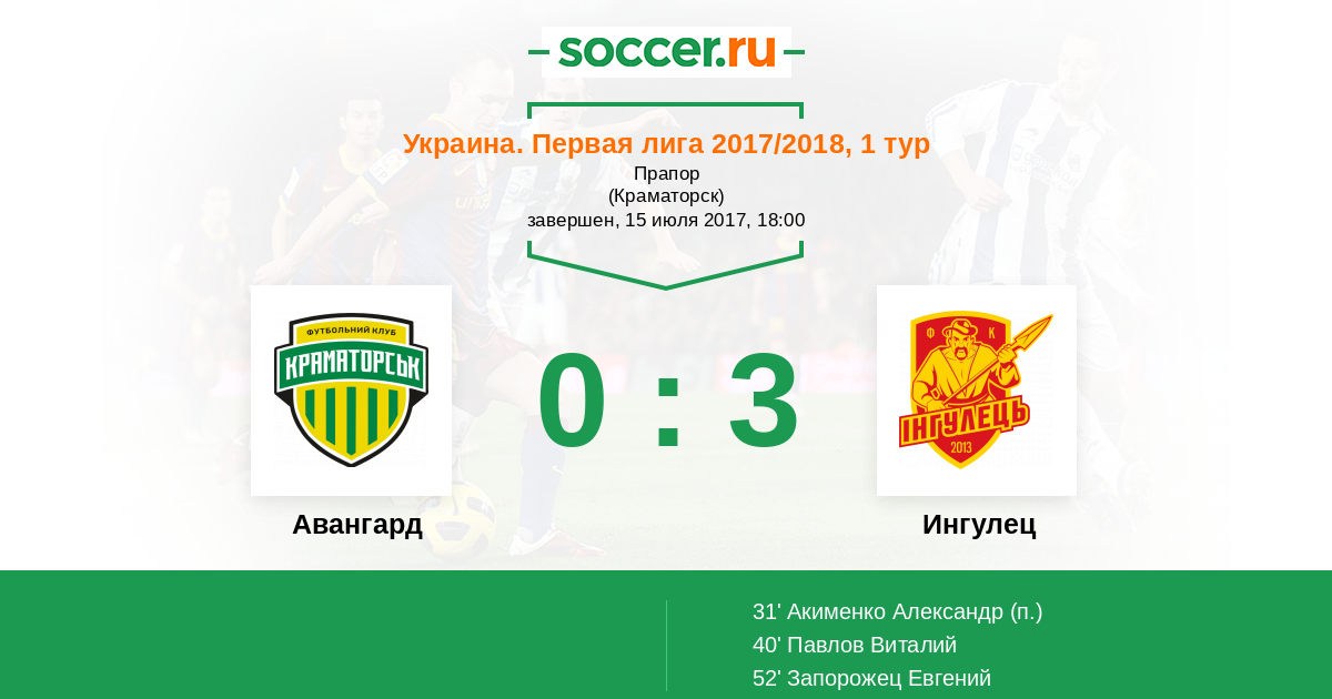 Протокол матча Авангард против Ингулец