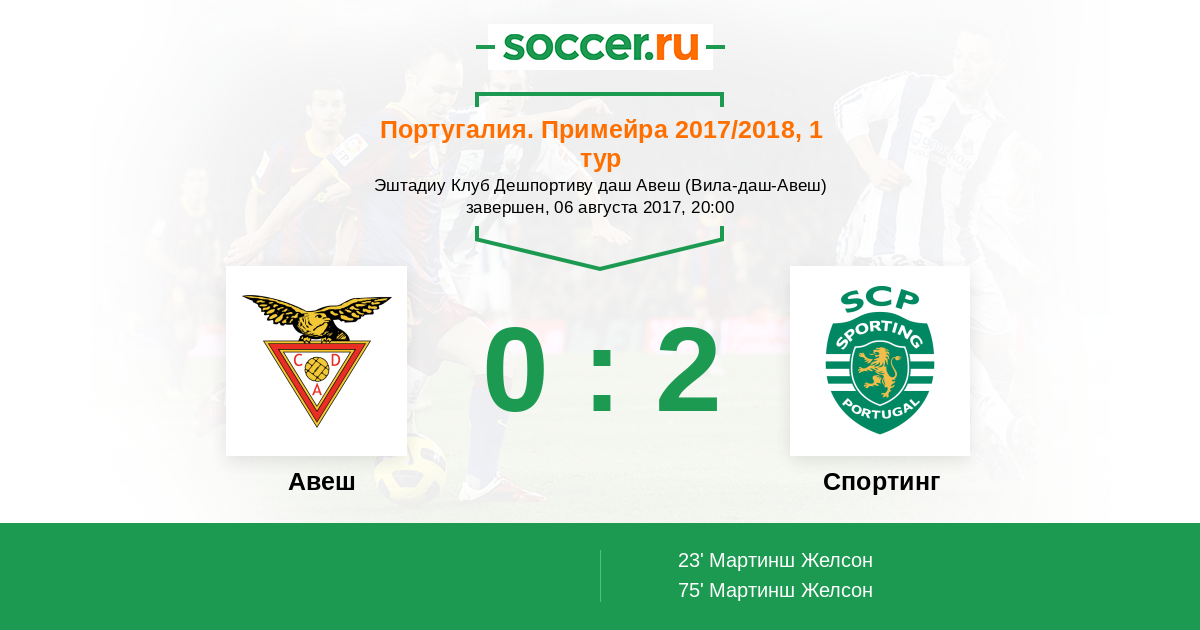 23' (0:1) Мартинш Желсон (77) (Акунья Маркос (9))