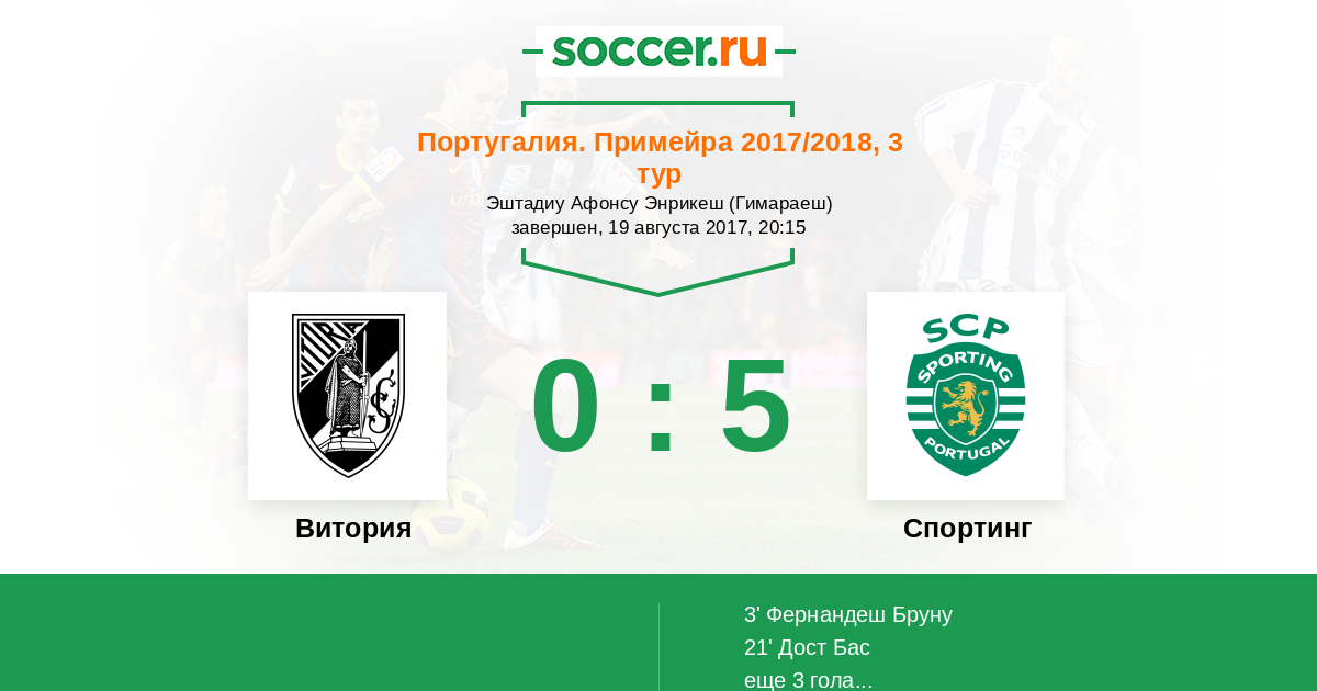 Протокол матча Витория против Спортинг