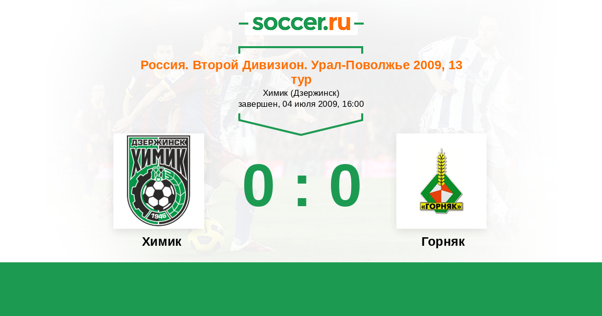 Россия. Вторая лига. Группа 4 12.10.2009 Горняк Логотип футбольный клуб Горняк (Учалы) 4:0 Логотип футбольный клуб Химик (Дзержинск) Химик