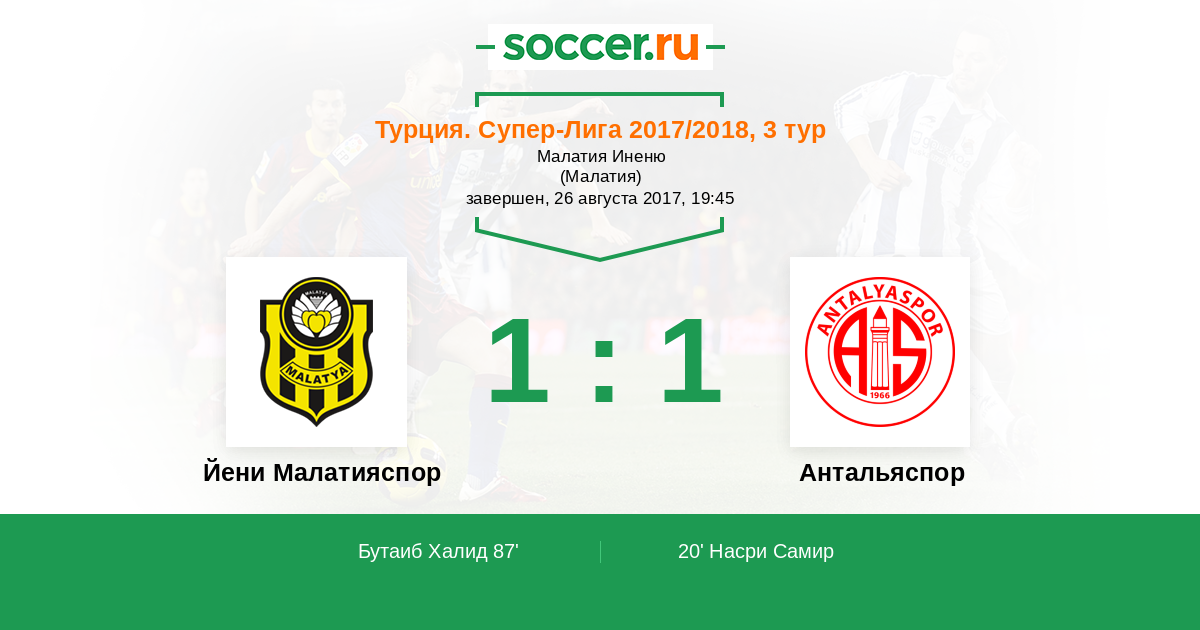 Протокол матча Йени Малатияспор против Антальяспор