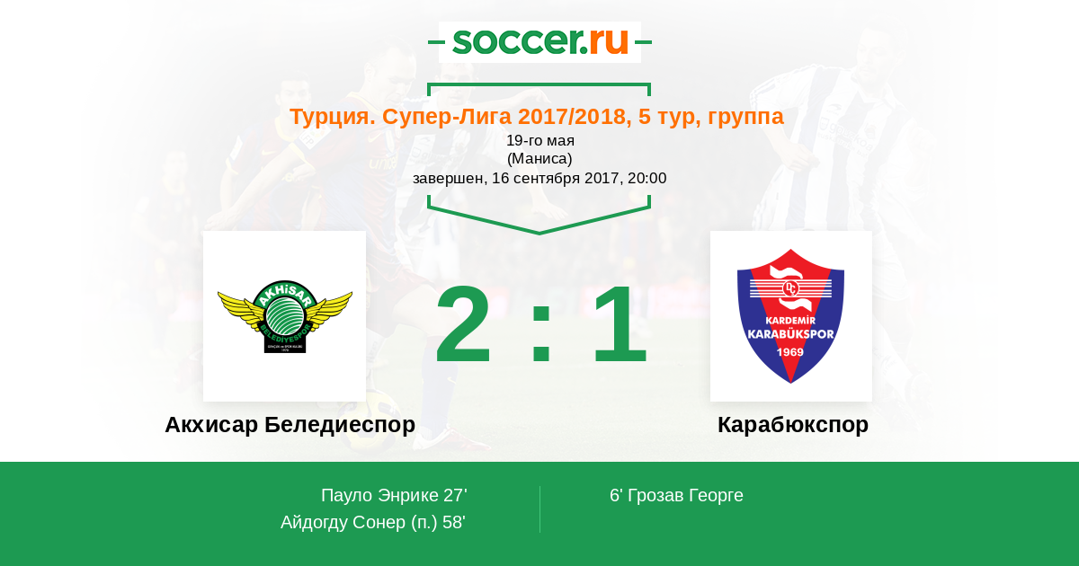 Протокол матча Акхисар Беледиеспор против Карабюкспор