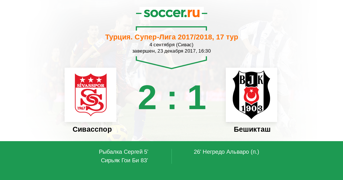 Протокол матча Сивасспор против Бешикташ