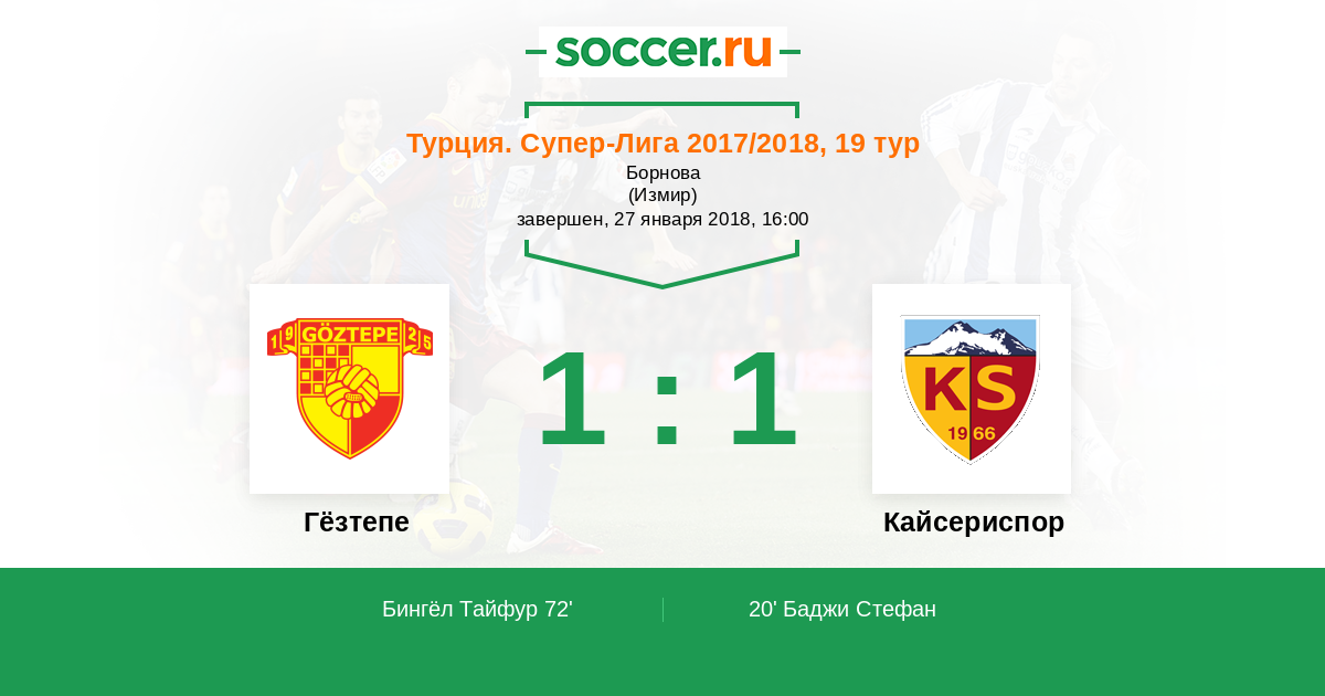 72' (1:1) Бингёл Тайфур (75) (Сариоглу Сабри (55))