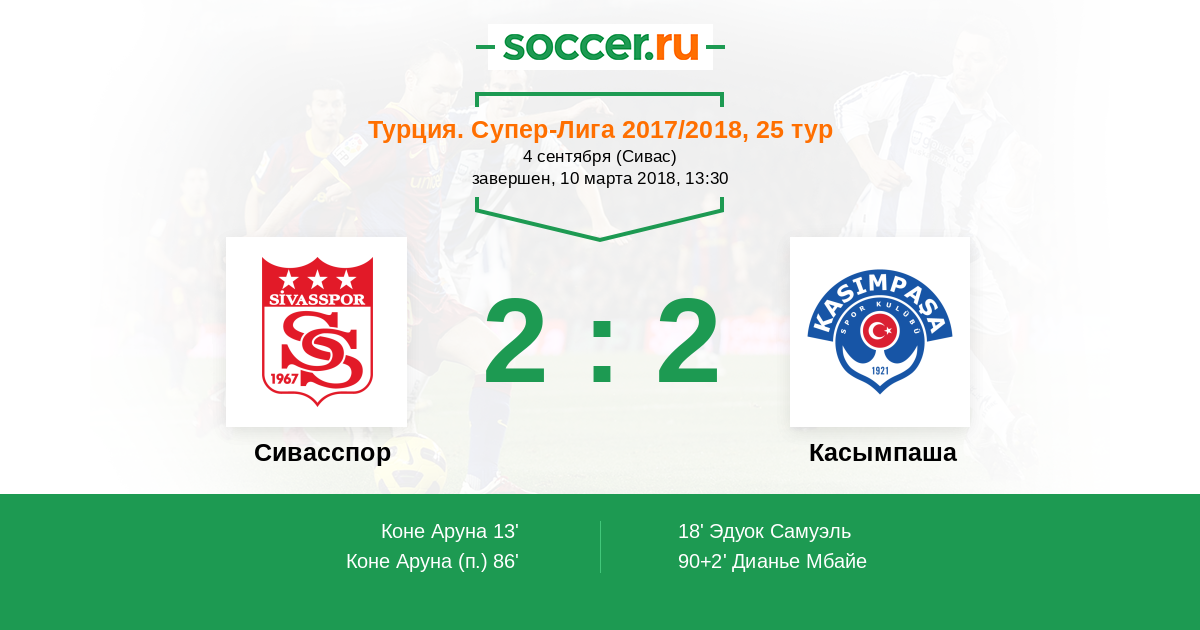 Протокол матча Сивасспор против Касымпаша