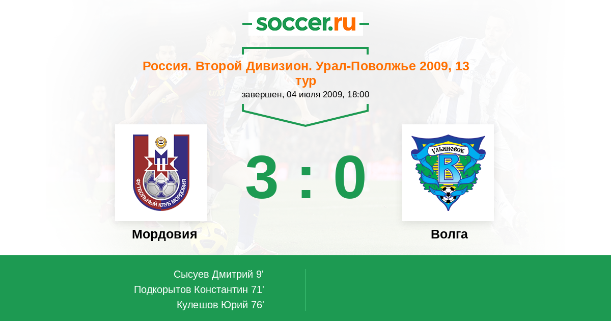 Протокол матча Мордовия против Волга
