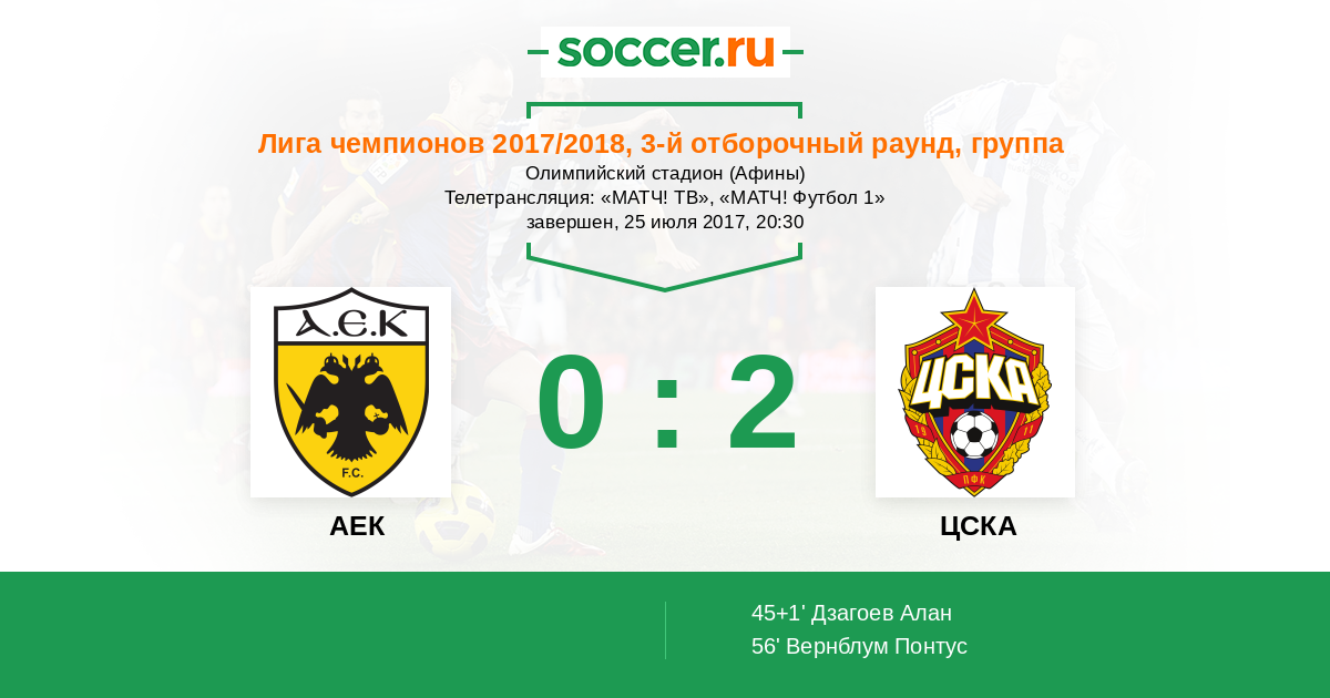 Протокол матча АЕК против ЦСКА